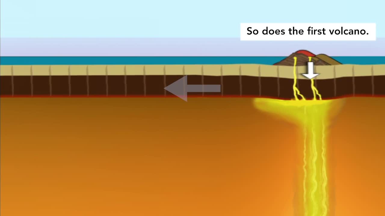 Thisplacerestsabovea hot spotinEarth’scrust.Here,acolumnofhotmagmarises.Whenitreachesthesurface,lavaspewsoutandpilesup.Eventually,avolcano forms.