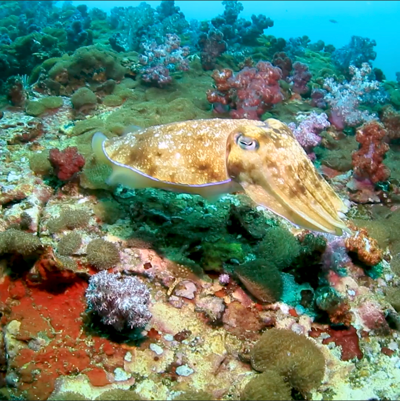Estasepiatambiénsecamuflapara esconderse.Cambiadeformaydecolordepielparaparecersealos corales.09/07/2024 17:17:25